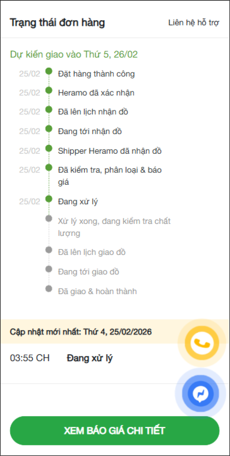 Khách hàng có thể theo dõi đơn hàng trực tuyến (website), được thông báo vấn đề trước khi xử lý, nhận thông tin tự động khi đồ hoàn tất (Zalo, SMS), xác nhận giao đúng người bằng mã OTP,… etc